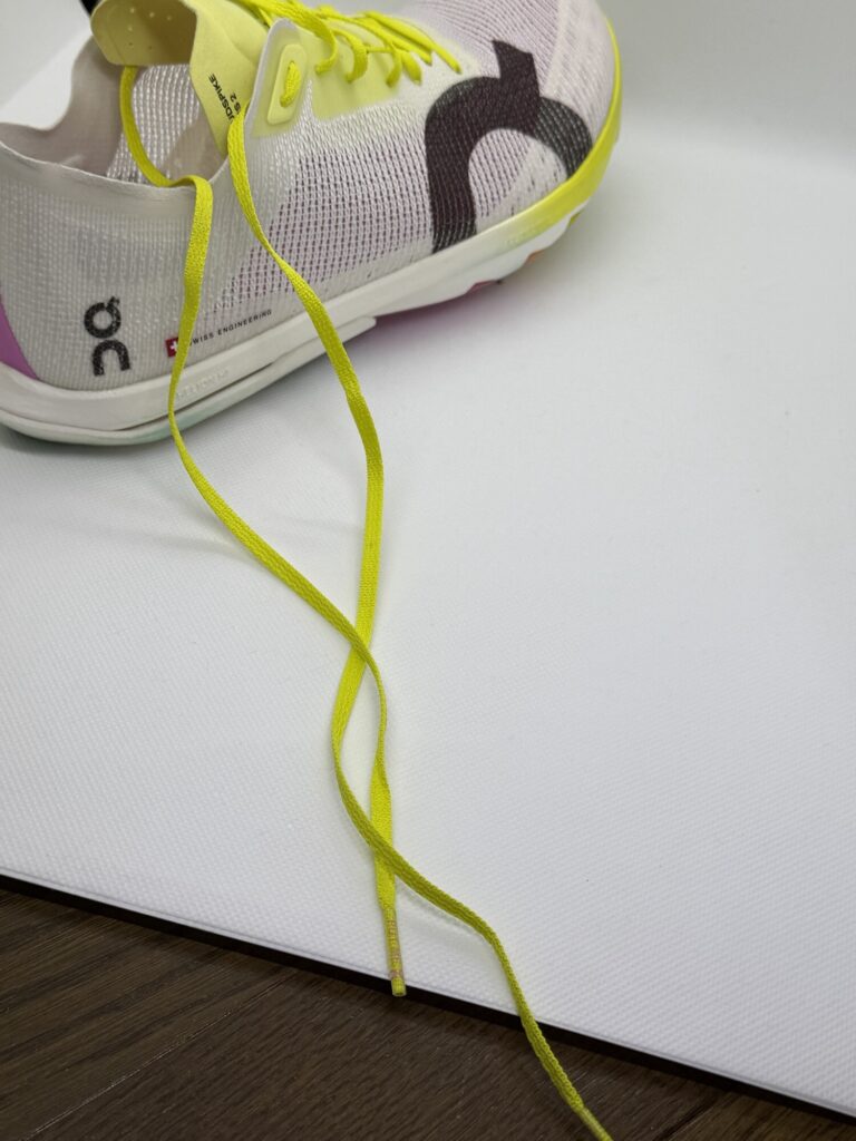 このクラウドスパイクシティウス2にはシューレースに特徴があって、写真ではわかりにくいですがシューレースの片面にシリコンのようなものが貼り付けられており、解けにくいようになっています。