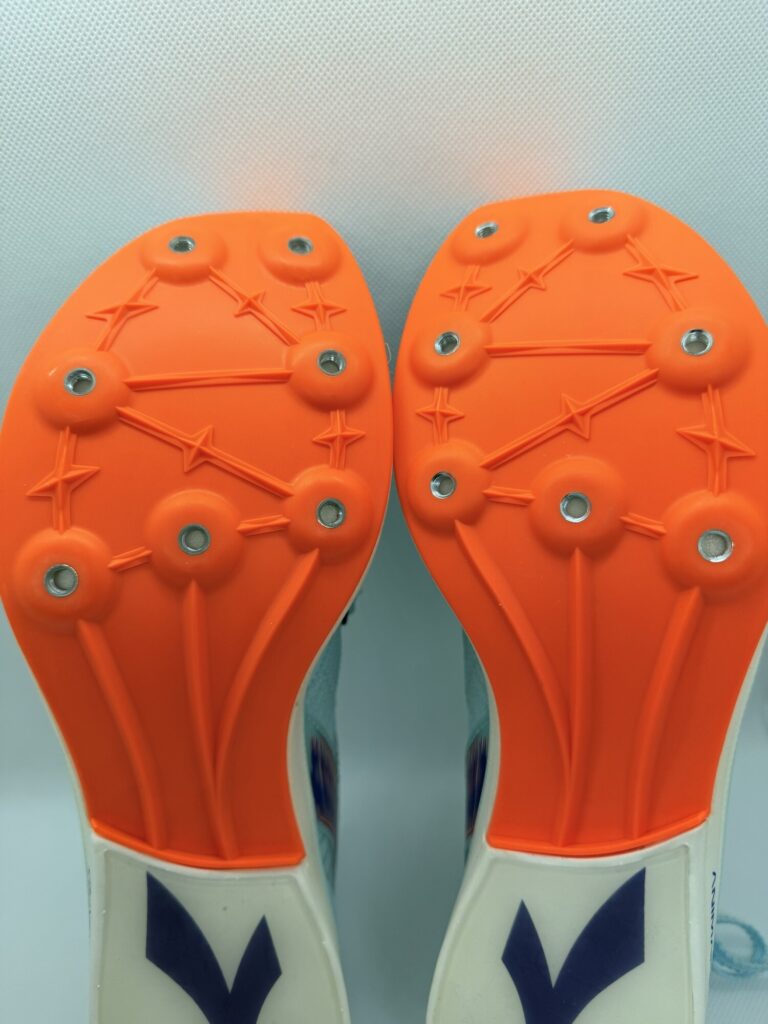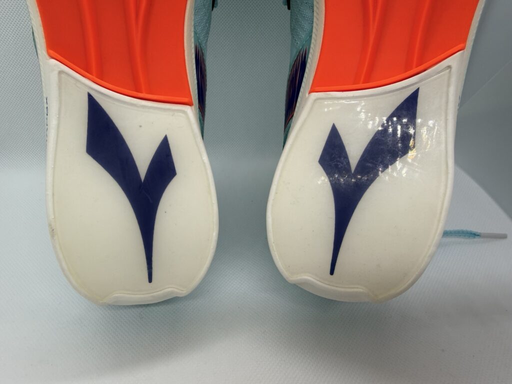 柔らかめながらも高反発なANIMAPBXとフルレングスの内蔵カーボンプレート、全足部のロッカー構造が合わさることで非常に強力なライド感が出て跳躍飛距離を伸ばしてくれそうなスパイクとなっています。