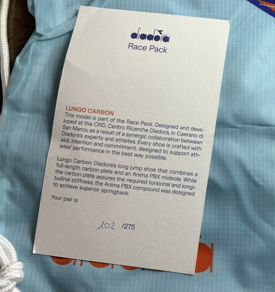 それもそのはず付属のカードにシリアルナンバーがついていてこのカラーのLUNGO CARBON Wは世界で275個しかないことがみうけられます。