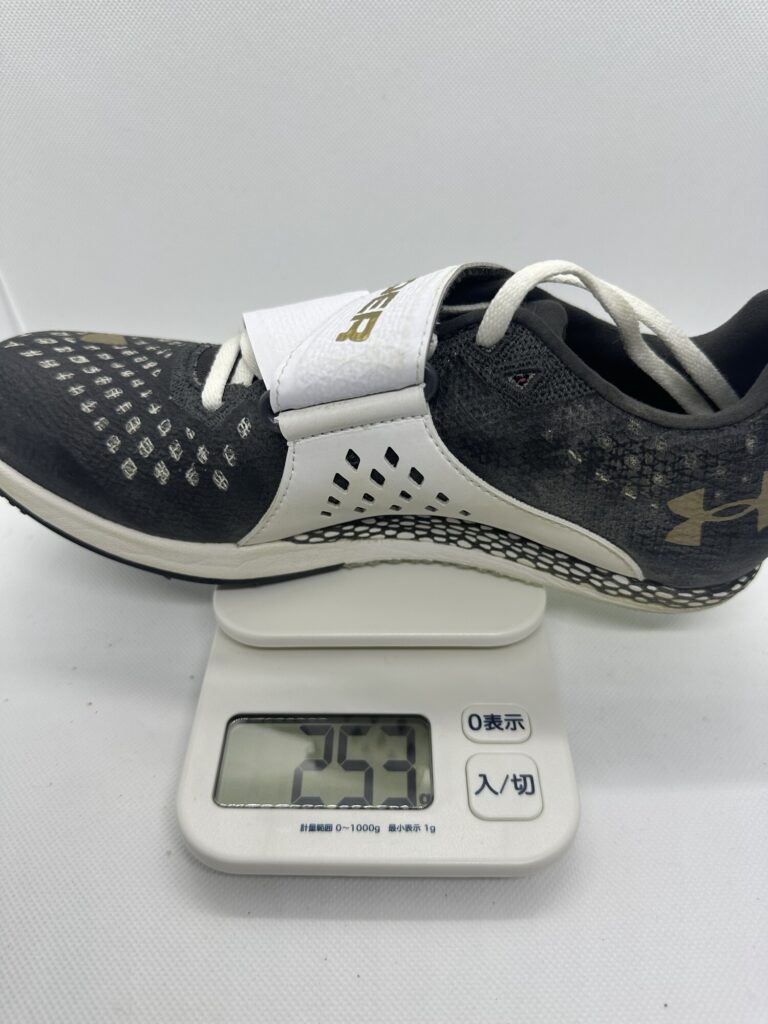 UA HOVR SKYLINE TJの重さは25.5cmのピンを外した状態で253gでした。重いですね。