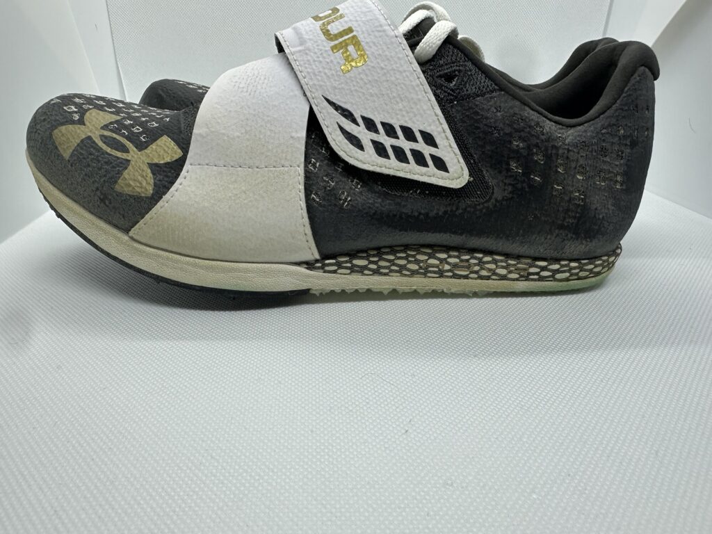 さらに接地面積が広いため安定感がありますし踵部のHOVRフォームに絶妙なクッション性があり三段跳で発症しがちな踵痛の予防もしてくれます。